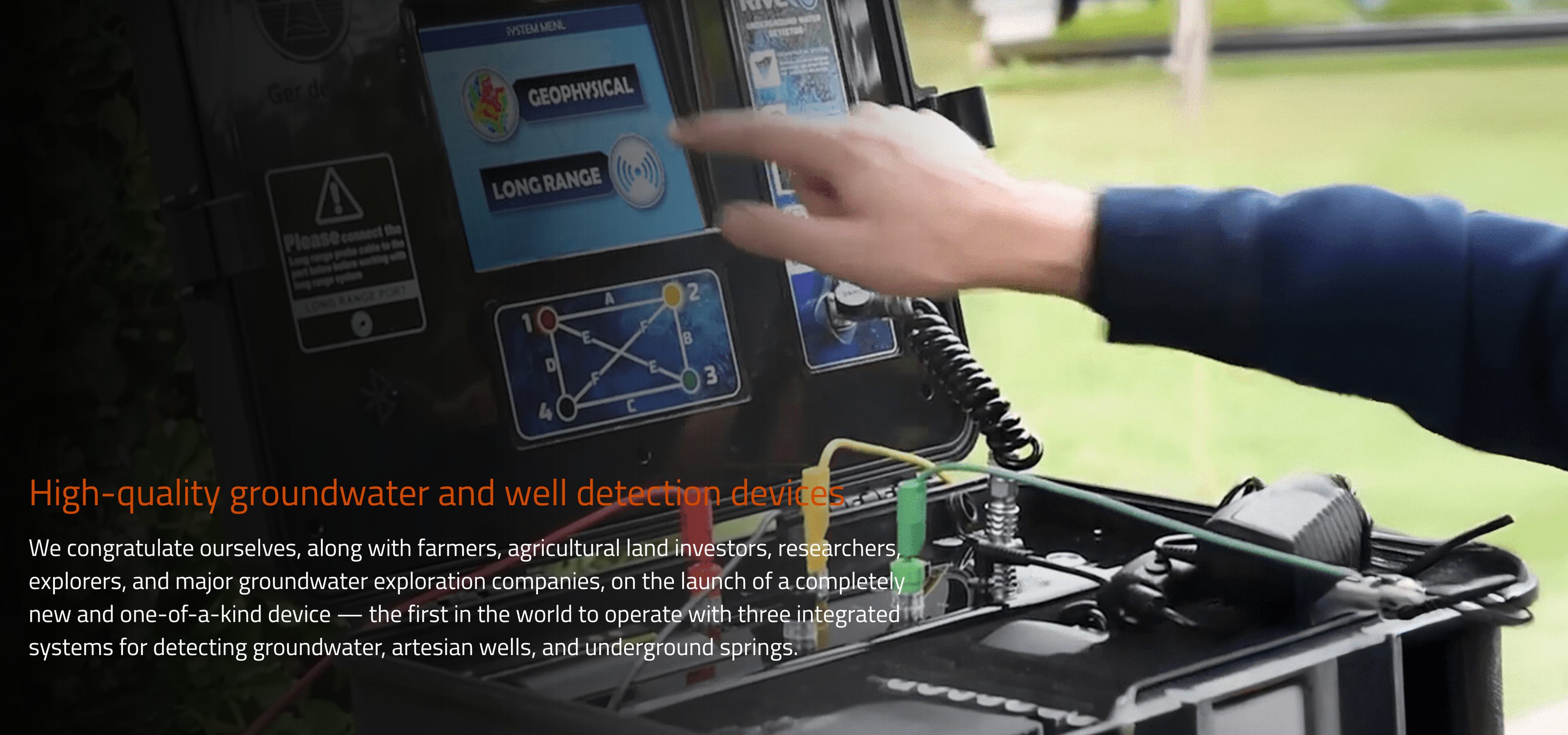 We now place in the hands of explorers and water detection enthusiasts a modern, one-of-a-kind technology for discovering groundwater, artesian wells, and underground springs.