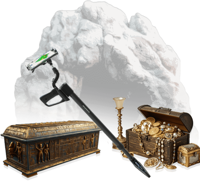 The system reveals everything hidden beneath the surface — including gold, precious metals, buried treasures, caves, voids, tunnels, and tombs.