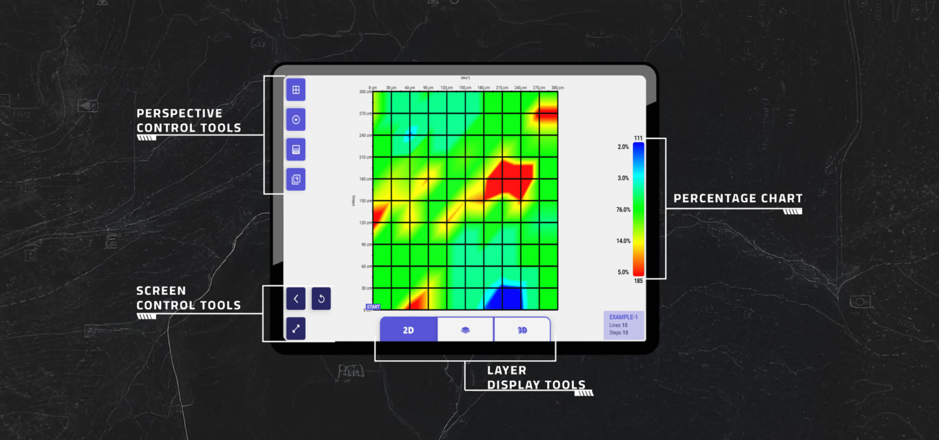 It performs full imaging of all ground layers and displays the scan results from all directions on the device’s screen, providing a clear view of the underground targets.